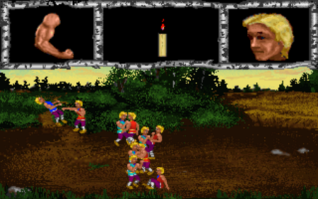 В этой игре очень интересный интерфейс и механики. По ходу сражения бойцы качают свои руки, увеличивая силу удара, а свеча отображает остаток запаса жизненных сил.