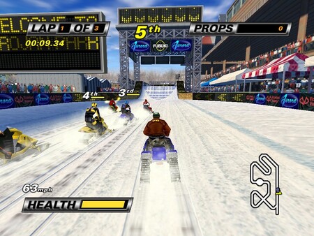 Whiteout (Белый Вихрь) — симулятор гонок на… снегоходах. Несколько капризное транспортное средство, надо сказать, однако простое в управлении.