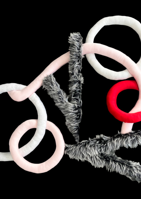 Проект представляет текстильную картину, состоящую из геометрических фигур: кругов, дуг и треугольников. Они соединены между собой, одна входит в другую. Каждая фигура выполнена из различных материалов, таких как шелк, кружево и мех.