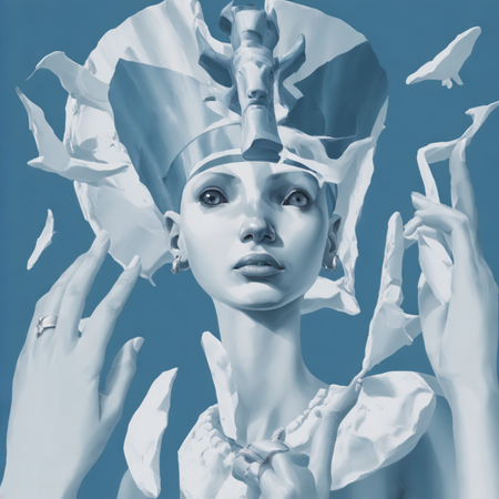 Полученная модель была сохранена на Hugging Fасе как MOONCHANPIL style. Далее началась генерация изображений серии на тему популярных женских образов в MOONCHANPIL style и финальный отбор лучших генераций.