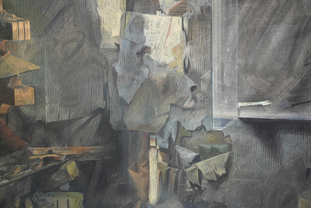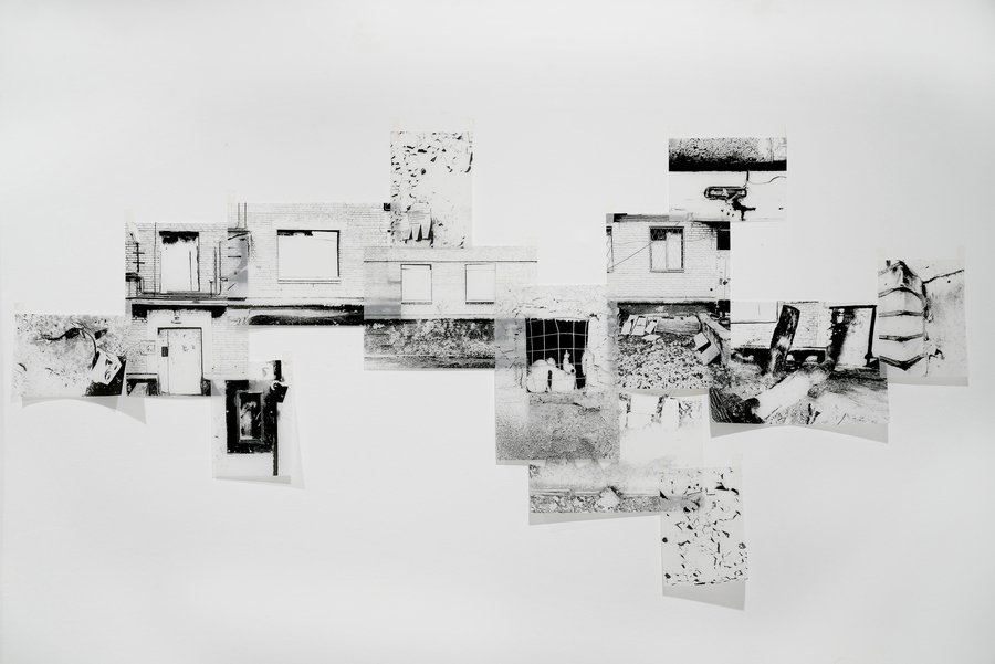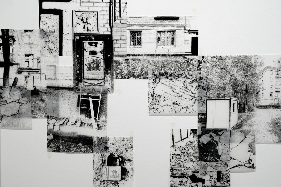 Объектом моего исследования стал микрорайон «Камушки» — заброшенные пятиэтажки, которые должны были снести ещё пять лет назад, но они продолжают существовать, теряя функцию и обретая новую форму. Я обращаюсь к теме энтропии как эстетики: фиксирую фрагменты фасадов, мусора, текстур и переношу их на плоскость. Развеска намеренно «дышит» лакунами; пустота между элементами работает как активное поле, требующее включённого взгляда.