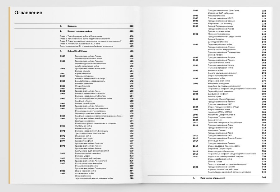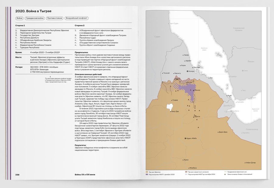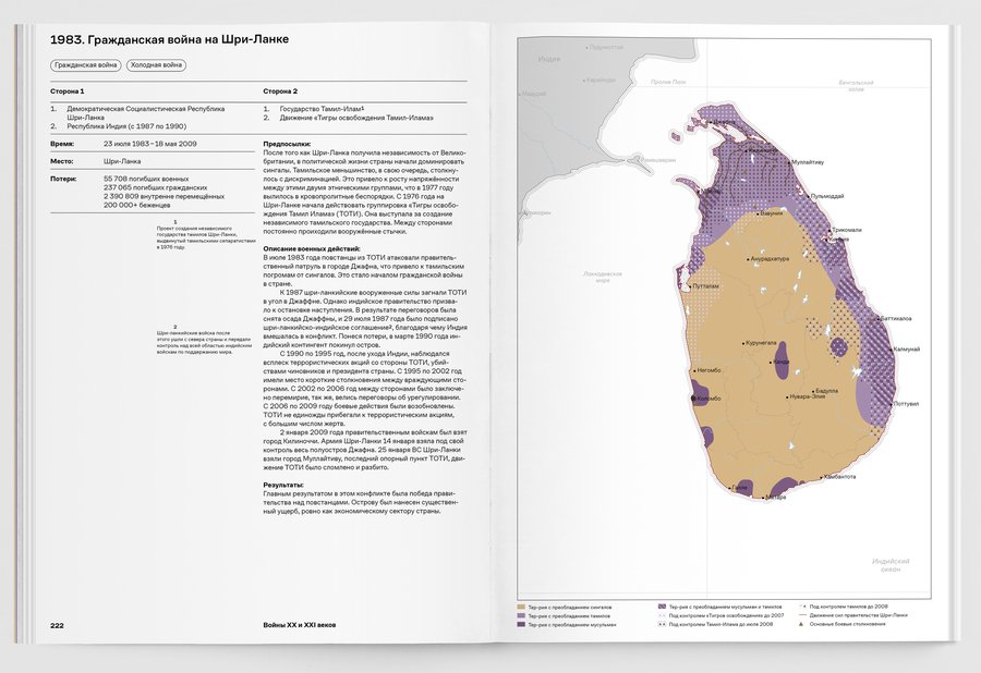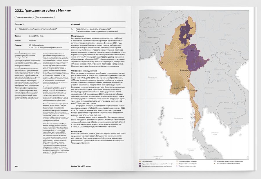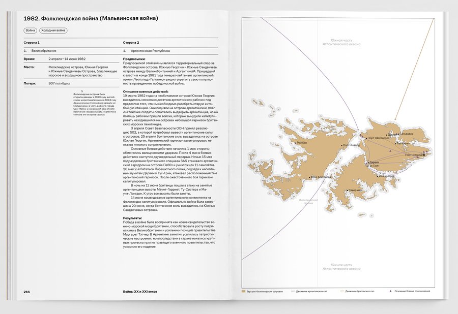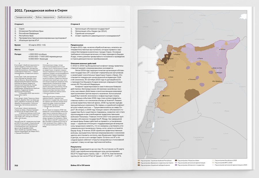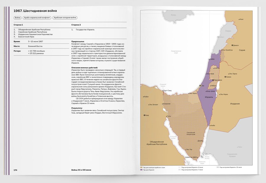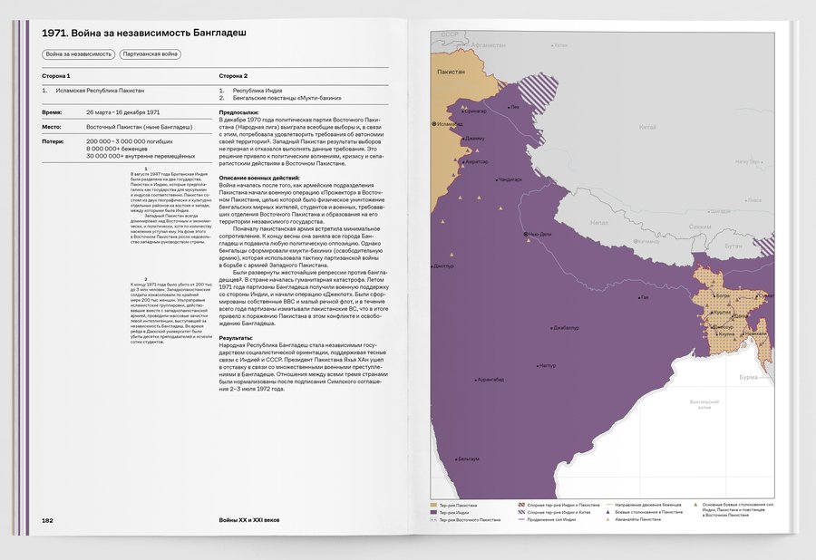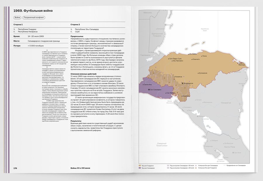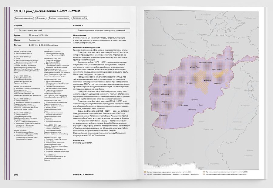 При упоминании конкретных военных конфликтов добавляются визуальные сноски на соответствующий обзор в третьей части книги.