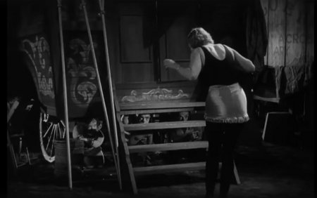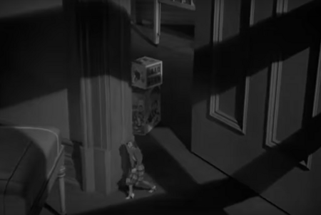 «Дьявольская кукла» 1936 г. В этом фильме в отличие от остальных больше подвижности камеры, также используются «скошенные изломанные кадры», которые нарушают привычную геометрию кадра и создают визуальный дисбаланс. Эти кадры добавляют ощущение «извращённой реальности», мир «миниатюрных людей» представлен не просто уменьшенным, а искажающимся, что усиливает тревожность и гнетущую атмосферу того, что могут сделать люди с другими людьми.