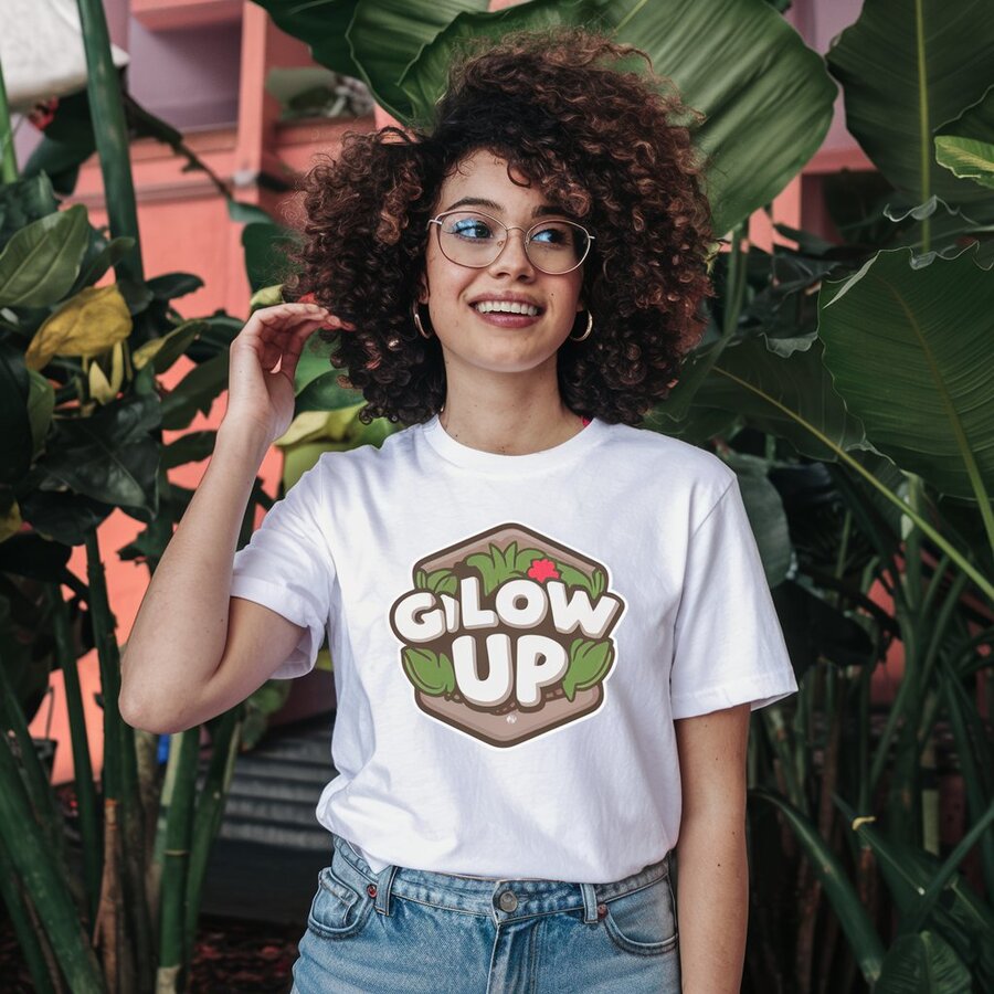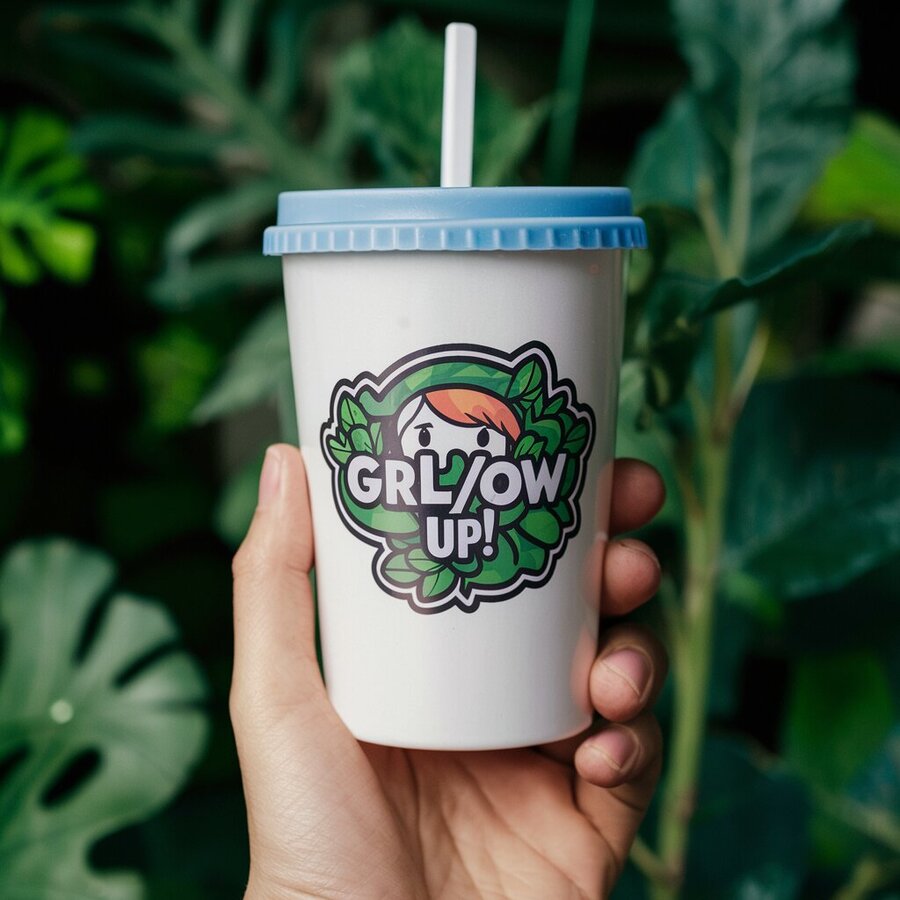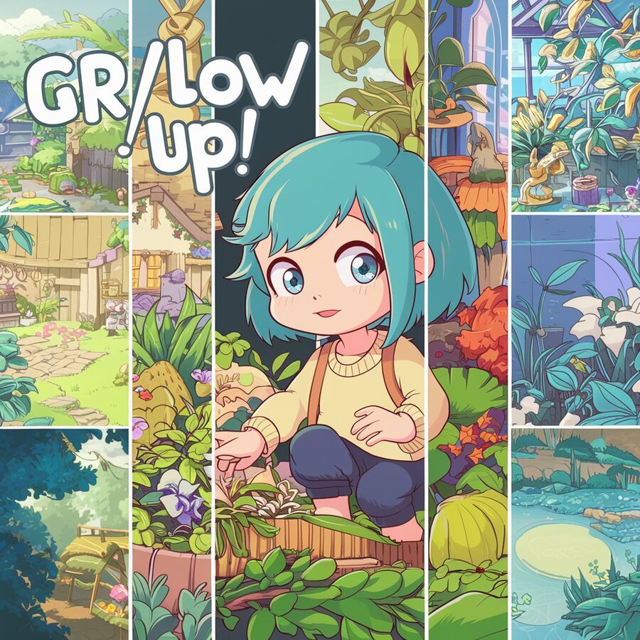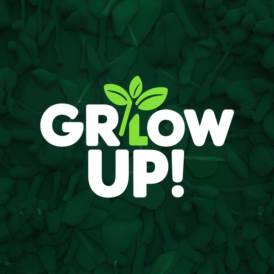 1. Оригинальный промт A logo from letters for a computer game called GR/LOW up! it should include plant based elements and cartoony style