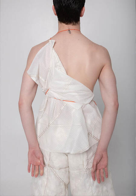 Проект «Фаза полета» создан для того, чтобы эффективно использовать старые и непригодные парашюты, превращая их в новые продукты и материалы. Парашютный шелк очень чувствительный материал и не прочный материал поэтому он зачастую рвется и парашют уже становится непригодным. В данном проекте автор искал новые способы применения в одежде. Одним из таких способов стал нарезание парашюта на наполнитель. Парашютный шелк идеально для этого подходит так как имеет малую плотность и вес.