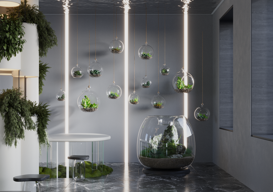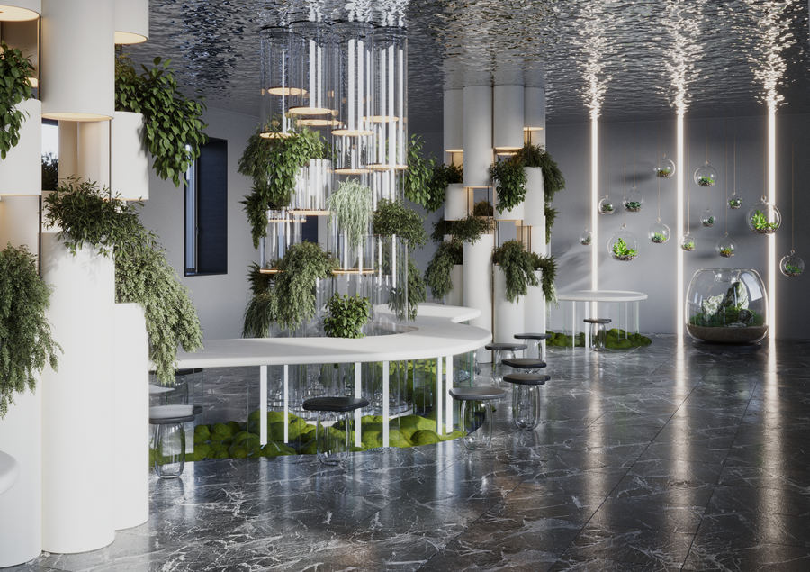 Дизайн-проект «Peace of Mind» создан для компании, занимающейся флористикой, целью было создать комфортное креативное пространство для окружающих. Интерьер сочетает в себе стеклянные элементы и растения, что способствует созданию ощущения открытости. Использование растений помогает снять стресс, улучшить концентрацию, что делает пространство идеальным для работы и релаксации.