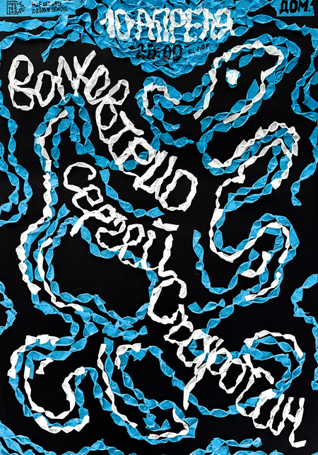 Plaque for the concert of Volkovtrio and Sergei Starstin at the SC DOM. Created manually with white and blue scotch on black paper, using a black marker.