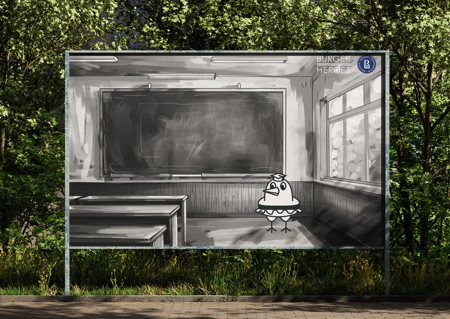 Вышбургер — очень креативный и одинокий ворон. Все вокруг считают его странным из-за того, что он всегда носит костюм бургера, а также Вышбургер ужасно невнимателен и постоянно делает ошибки в словах.