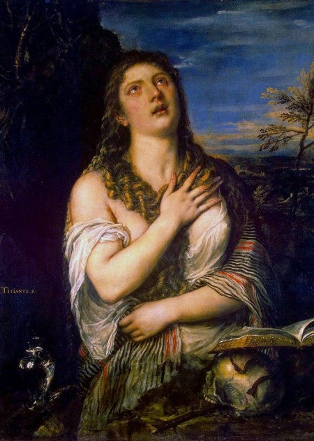 Кающаяся Мария Магдалина (картина Тициана, около 1565); Мария Магдалина и ангелы. Гвидо Рени, 1633 год