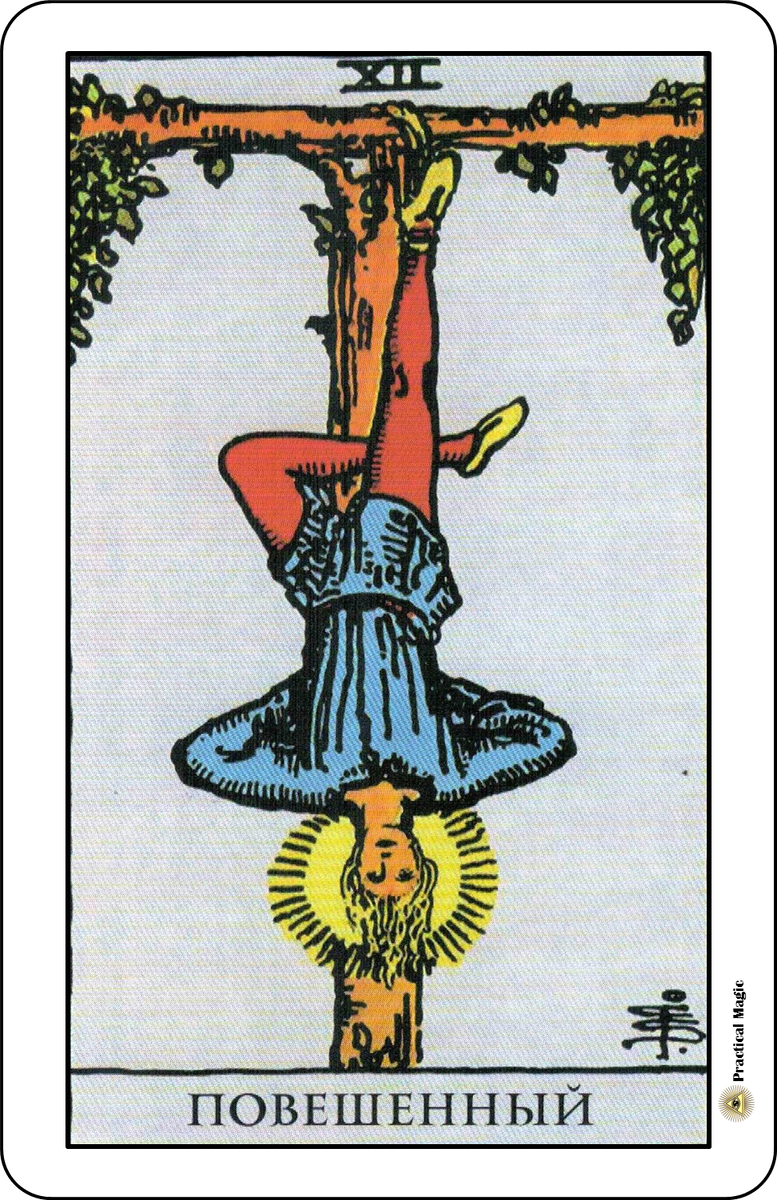 Повешенный: Образ самопожертвования и принятия жертвы. Повешенный указывает на необходимость понимания, что некоторые жертвы необходимы для дальнейшего роста.