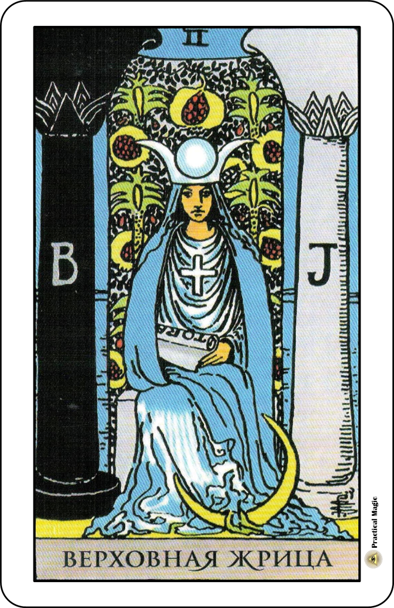 Жрица: Воплощение интуиции и скрытых знаний. Жрица призывает нас слушать свой внутренний голос и доверять интуиции.