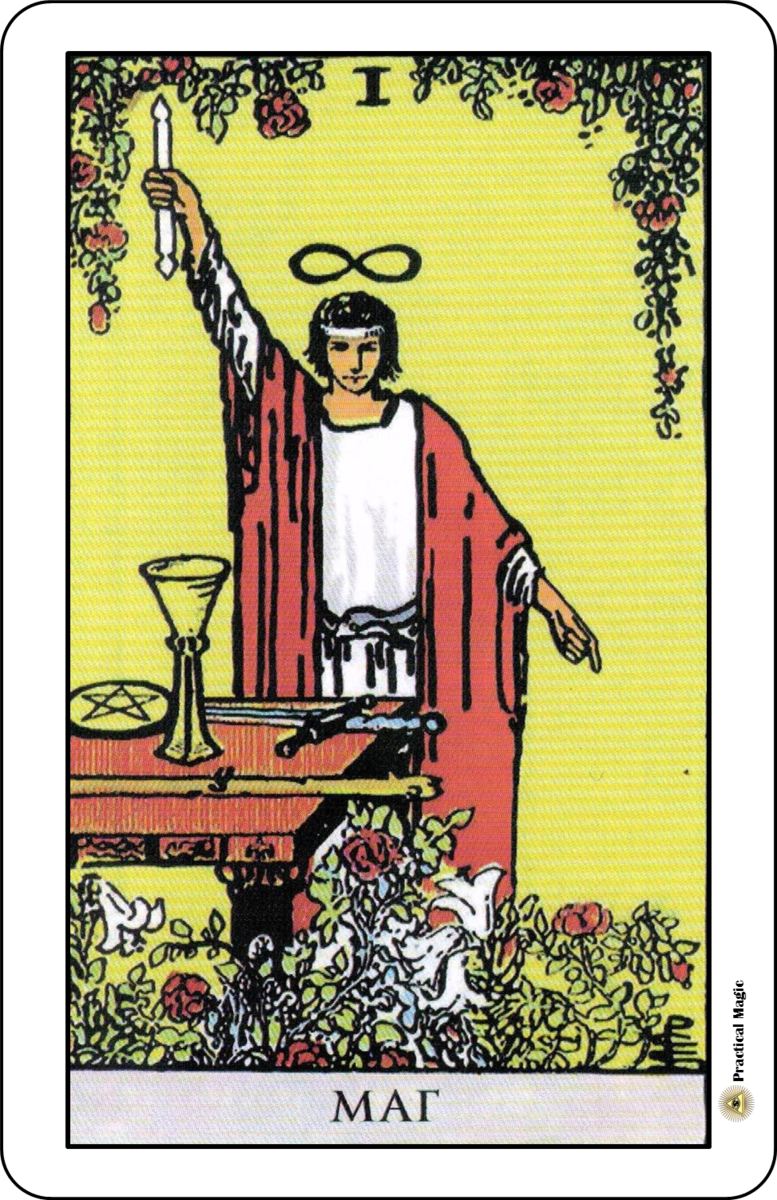 Маг: Символ творчества и манипуляции энергией. Маг объединяет земное и духовное, указывая на наш потенциал воплотить свои идеи в реальность.