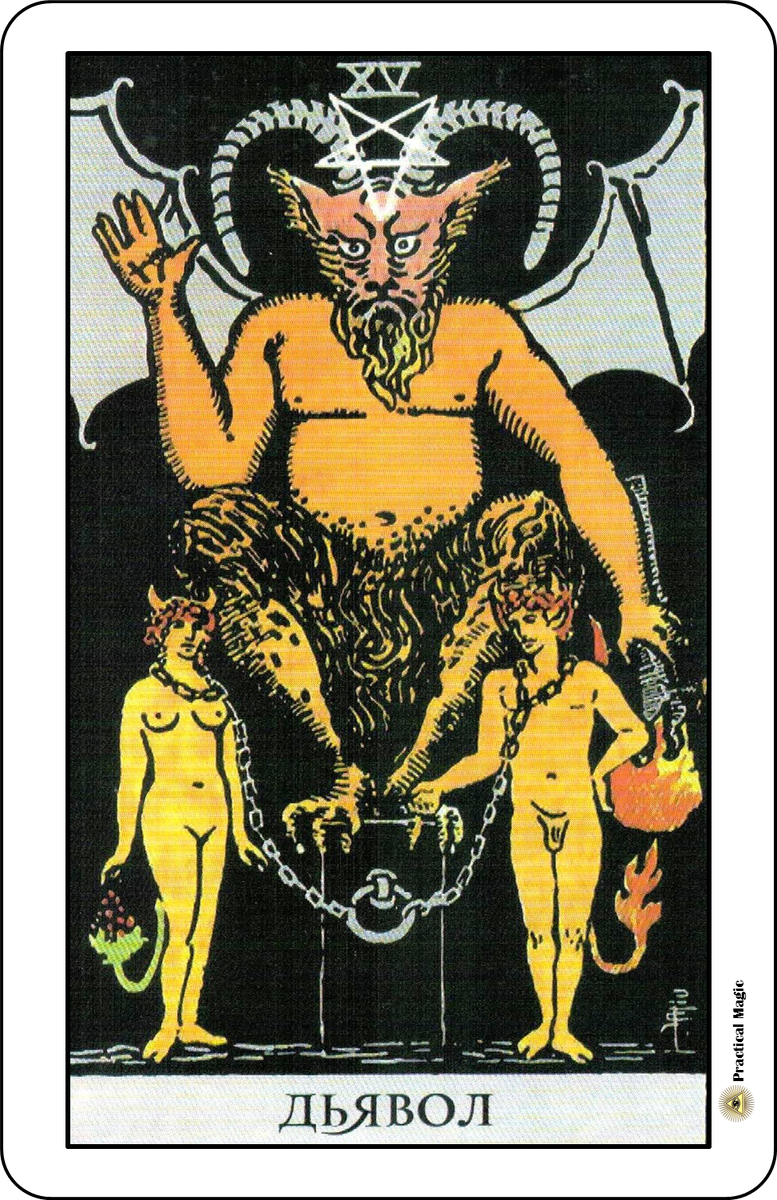 Дьявол: Символ иллюзий и зависимостей. Дьявол указывает на опасность порабощения материальными вещами и иллюзиями.