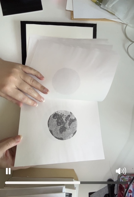 Книга изготовлена полностью вручную, иллюстрации созданы в технике горячей печати — на каждой из 34 странице находится уникальный рисунок, начиная от микроточки в самом начале и заканчивая многократным наложением графического отпечатка в финале. Тем самым черный цвет постепенно разрастается и заполняет весь объем листа. Но самая последняя страница книги остается полностью белой.
