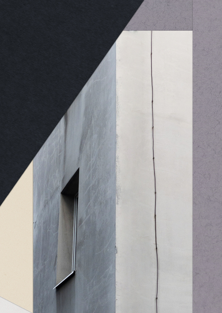 В серии коллажей «Несущие линии» исследуется пространство рабочего посёлка возле Шуховской телебашни, но не как памятника утопии, а среды, где в строгой геометрии проступает какая-то удивительная тонкость и мягкость.
