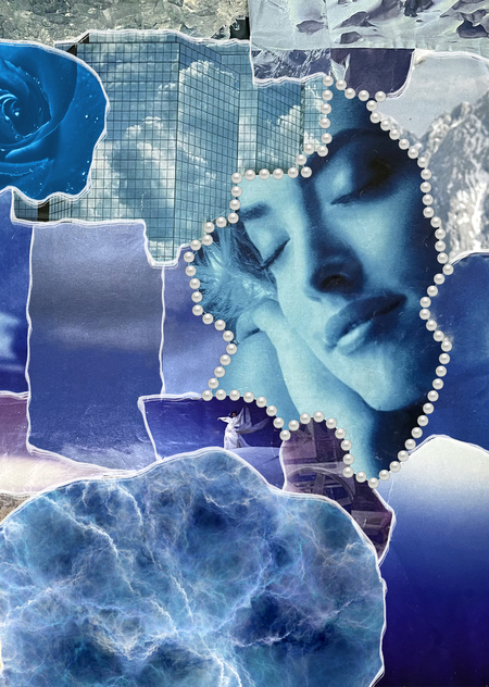 AIR FORMULA The collage is made up of a classic technique of overlapping pieces of printed images. The collage atmosphere was created by painted lines, mixed shapes, and a certain color solution. And as a final touch, were added small pearl beads.