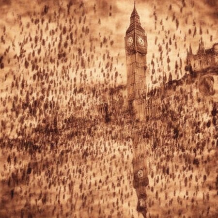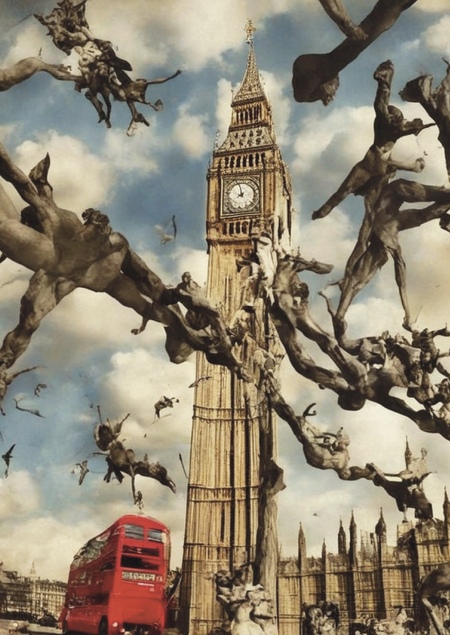 Первые генерации были по запросу Биг-Бен в Лондоне в стиле Сальвадора Дали. Я решила выбрать Биг-Бен, поскольку, на мой взгляд, одна из самых известных картин художника — это картина с часами («Постоянство памяти»), а самые известные часы — это Биг-Бен