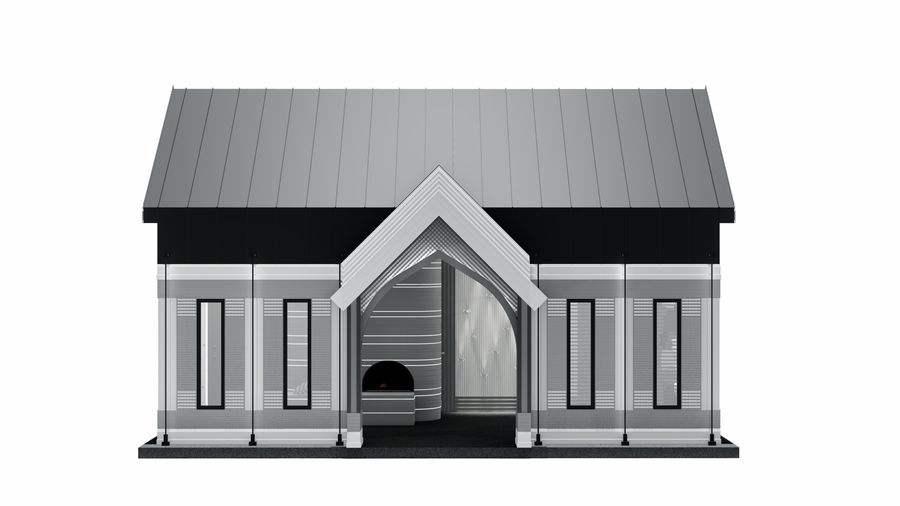 Резные фасады со струнной подсветкой и современной крышей в стиле барн