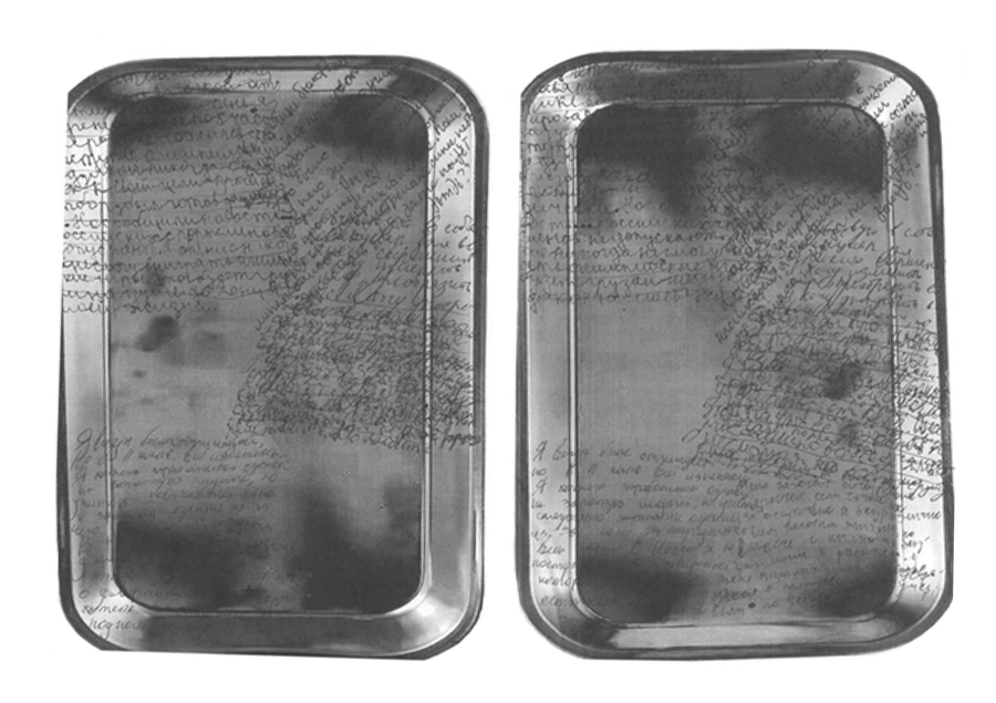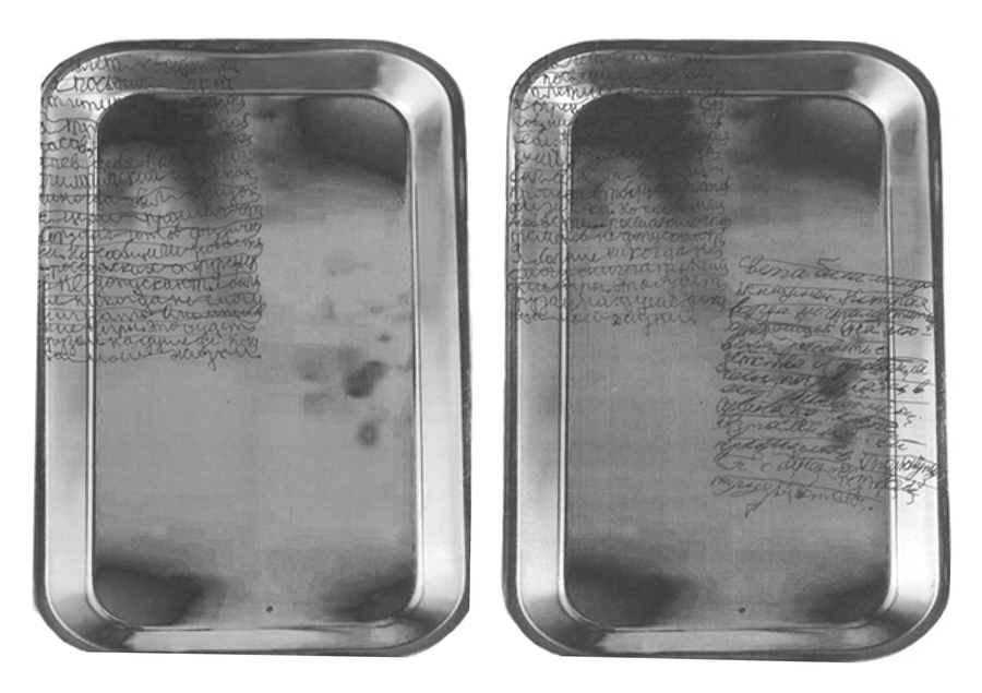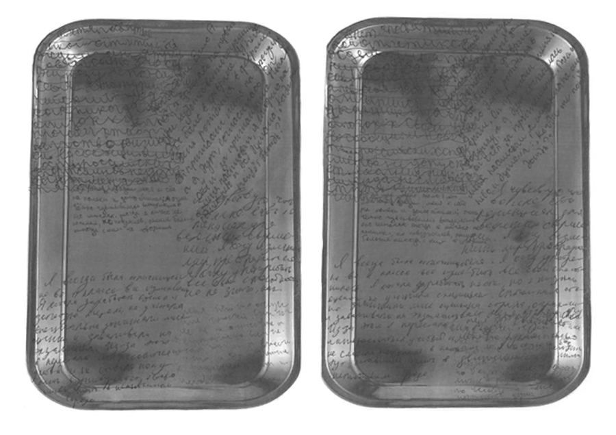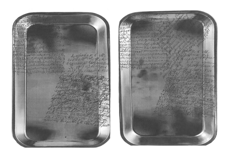 Наш зин — дополнение к проекту. Обложка зина с движущимся механизмом. На каждом развороте истории людей с неразборчивым почерком< которые постепенно наслаиваются друг на друга.