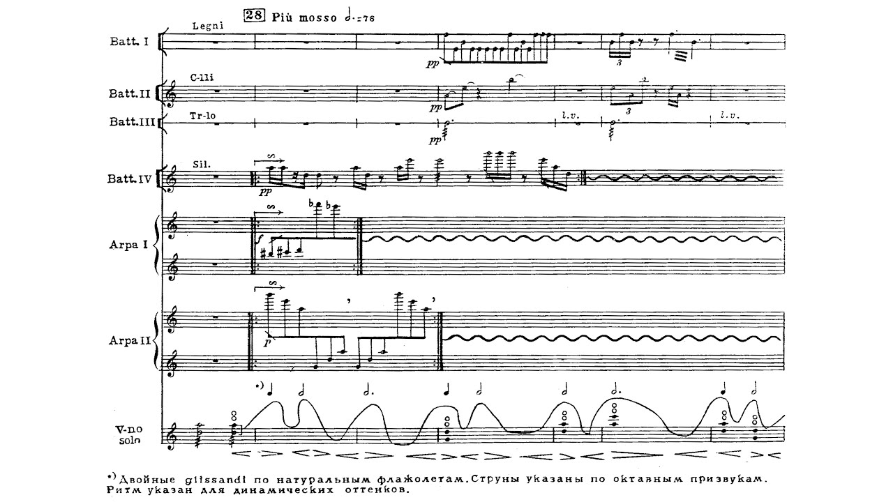Партитура De Profundis демонстрирует уникальный подход Губайдулиной к созданию музыкального контура В De Profundis он меняется от резких высказываний до плавных переходов, создавая ощущение путешествия сквозь различные эмоциональные состояния.