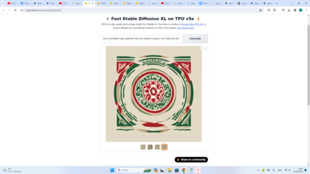 Создание логотипа было довольно тяжелым. Изначальным промтом был: «nice logo tatarstan folk». Однако все результаты, которые мне выдавала нейросеть не подходити по цветовой палитре и выглядели очень резкими, даже «агрессивными». Тогда я поняла, что нужно добавить конкретные необходимые цвета логотипа в промт и удачный резултат получился под следующим промтом: «nice minimalistic logo tatarstan folk color palette of green, red, white and beige»