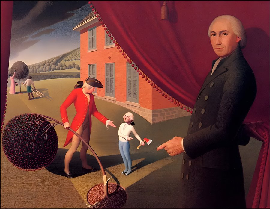 Для прославления американской культуры Вуд намеревался создать серию произведений, основанных на американских народных сказках и известных легендах, делая акцент на их фантастической природе. В итоге из этой серии сохранилась лишь одна работа — «Байка Парсона Уимса», повествующая о юном Джордже Вашингтоне с узнаваемым взрослым лицом и вишневом дереве.