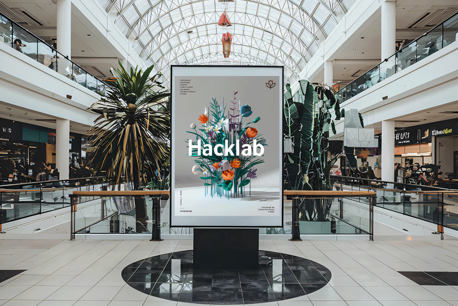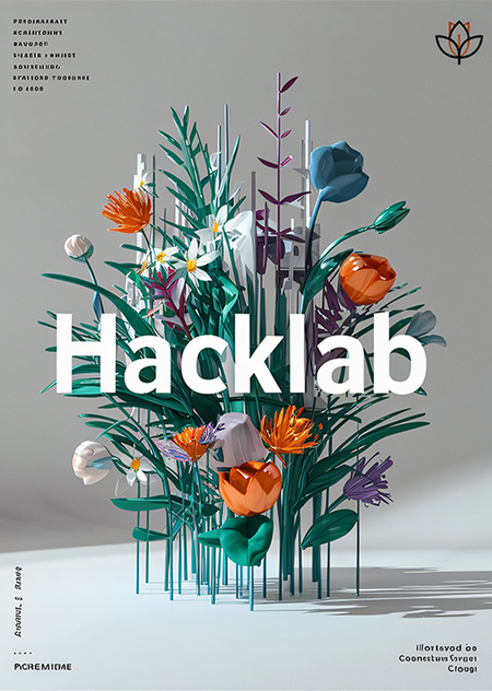 Id: A progmatic and strict logo of the «hacklab» brand, made in a minimalistic style with typographic elements. The logo is a minimalist image of a flower symbolizing consistency.