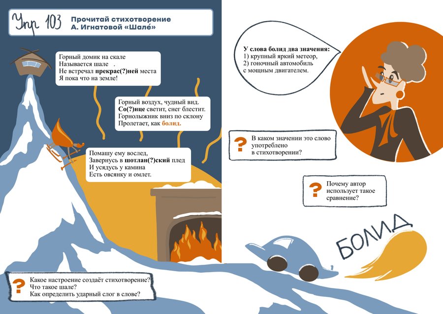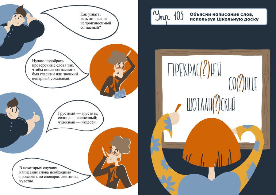В данном проекте представлены развороты для учебника русского языка 3го класса. Помимо этого на основе разработанных иллюстраций был сделан школьный мерч.