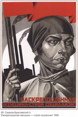 «Раскрепощённая женщина — строй социализм!», Страхов-Браславский А., 1926 / «Объединимся в стремлении к Великой Победе!», 1966-1976