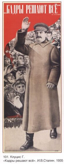 «Продвигаться сквозь шторм по стопам председателя Мао!», 1966-1976 / «Кадры решают все», Клуцис Г., 1935