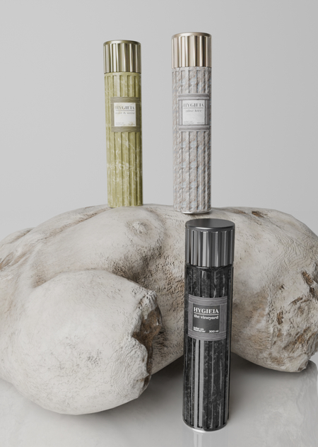 HYGIEIA (Гигиея, древнегреческая богиня здоровья) — освежители воздуха для туалета, вдохновленные формой и фактурой колонн. Линейка состоит из ароматов древней Греции, которые дарят покупателю свежесть: такую же вечную, как и история.