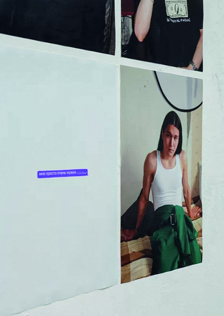 Изначально работа задумывалась как перформанс, но, представив работу в галерее, я поняла, что это будет не самым выигрышным вариантом, в следствие чего к инсталляции добавился молоток. Фотографии так или иначе трансформировались из символов в документацию перформанса − мне приходилось как буквально стучаться в квартиры героев, так и пытаться «достучаться» до них, умолять уделить мне внимание. Казалось бы, это невероятно очевидно, что коммуникация между нами никак не поменяется, не станет другой. она и не поменялась.