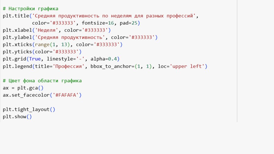 У некоторых профессий (например, фрилансер или дизайнер) продуктивность может колебаться сильнее, в то время как студенты могут демонстрировать более стабильные показатели. Самый высокий показатель эффективности продемонстрировали студенты на 2-й неделе, а самый низкий — дизайнеры на 7-й.