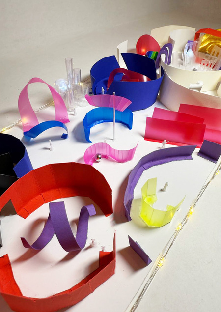 Материалы: цветной картон, полимерная глина, подсветка, папки для документов, шарики