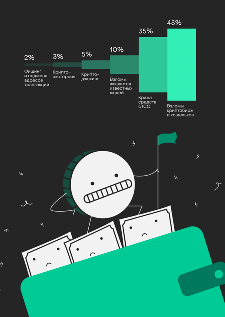 Тема лонгрида посвящена тому, каким образом и сколько криптовалюты воруют киберпреступники. Принцип повествования лонгрида — исследование. Итоговым продуктом является лонгрид на платформе Readymag для десктопной и мобильной версии, а также стикерпак «Крипто-дела» для мессенджера Telegram.