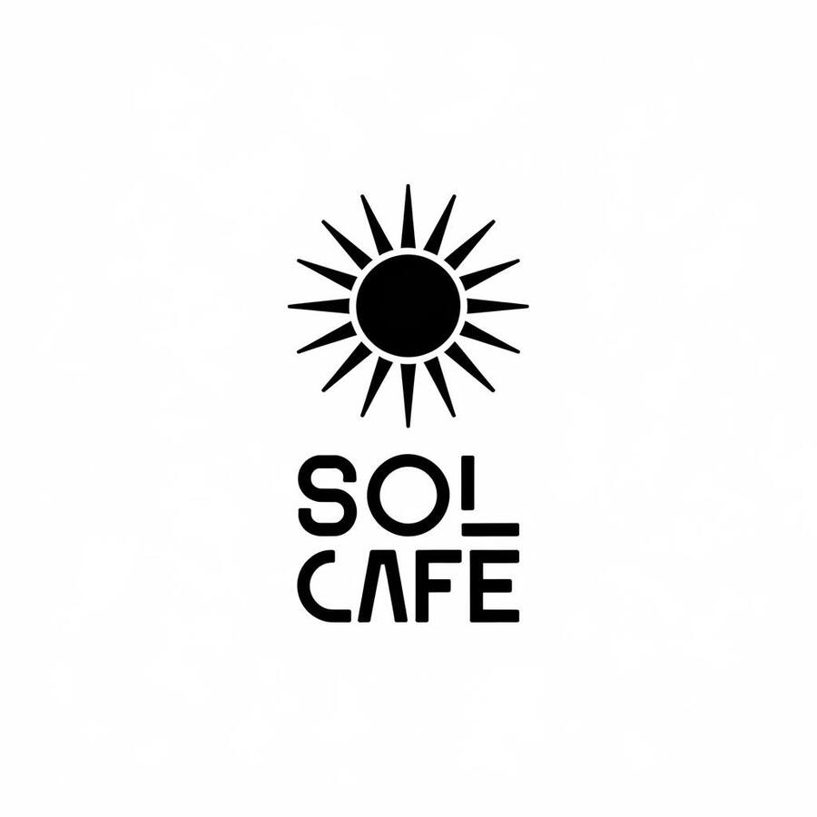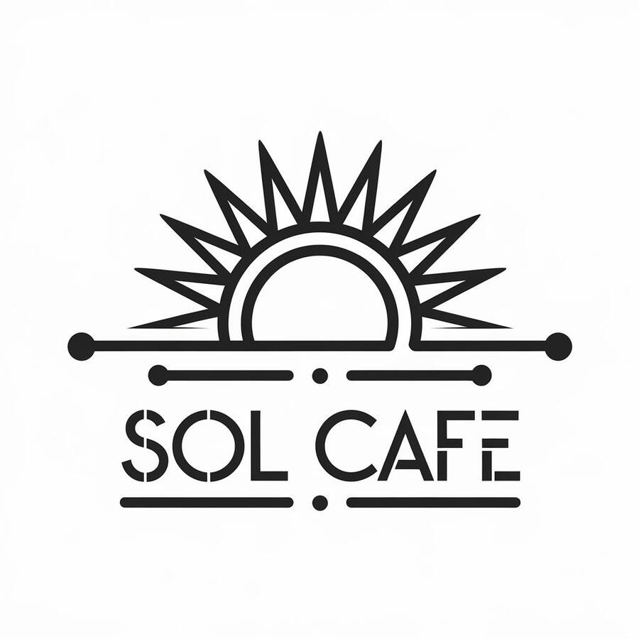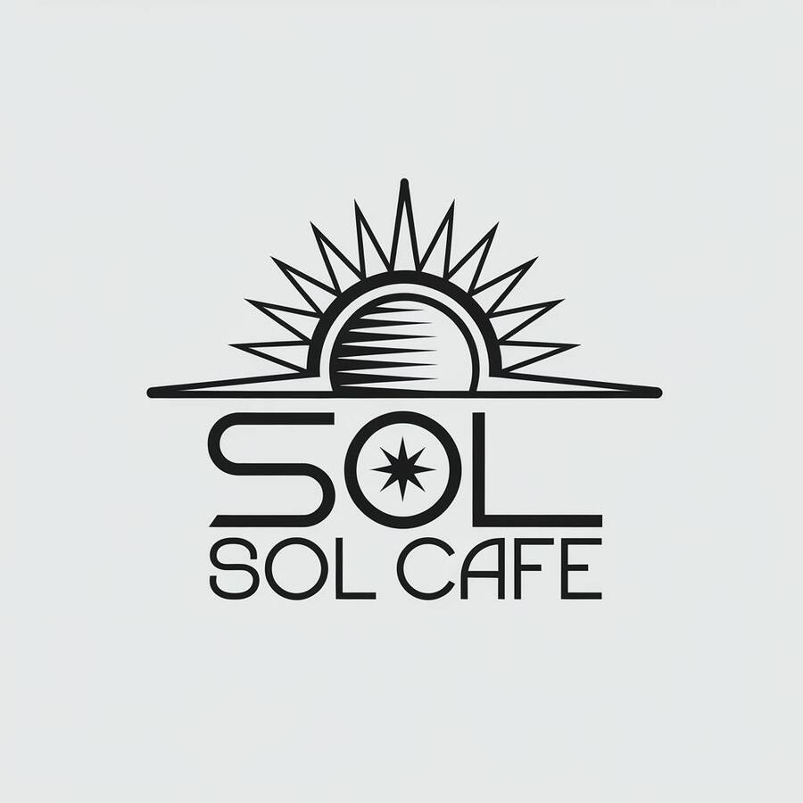 promt for ideogram: Futuristic and minimalist logo design for a coffeeshop. Logo is the sun on the center. Below it name of the coffeeshop «Sol Cafe».