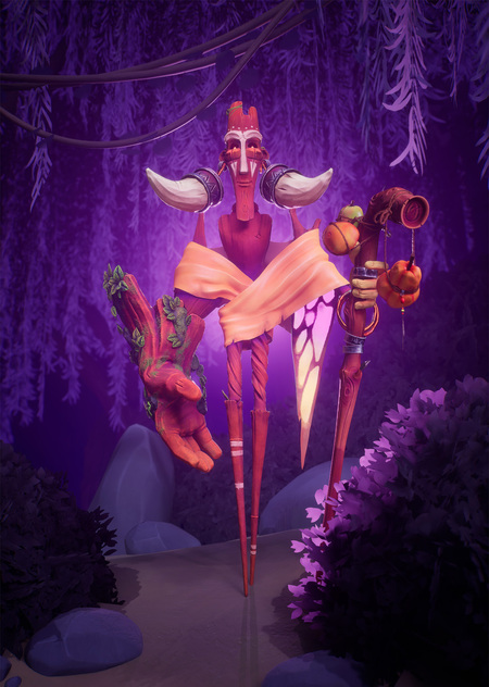 Разработка персонажа включает в себя концепт-арт, скульпт по рабработанной концепции, создание низкополигональной модели, текстуринг и риг.