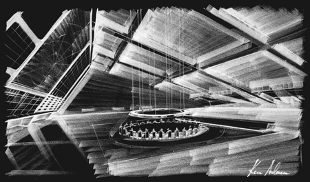Эскизы Кена Адама для декораций комнаты заседания военного совета, прибл. 1962–1963 гг.