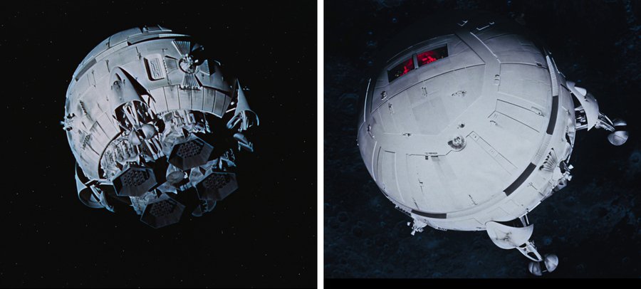 Помимо использования конкретных предметов модернистского дизайна, в фильме присутствуют предметы, спроектированные специально для кинокартины. В их дизайне можно также найти параллели с современными на тот момент объектами промышленного дизайна. Так, например, как передняя часть корабля «Дискавери», так и капсулы для работы в космосе имеют схожую форму с креслом шаром (Ball chair) Ээро Аарнио 1966 года. Особенно хорошо это видно в момент открытия задней крышки космического батискафа (как видно на илл. снизу). Чёрное пространство внутри капсулы и белая внешняя оболочка-скорлупа создают схожий контраст между естественным и искусственным, какой был показан на примере сцены с космонавтами за столом.