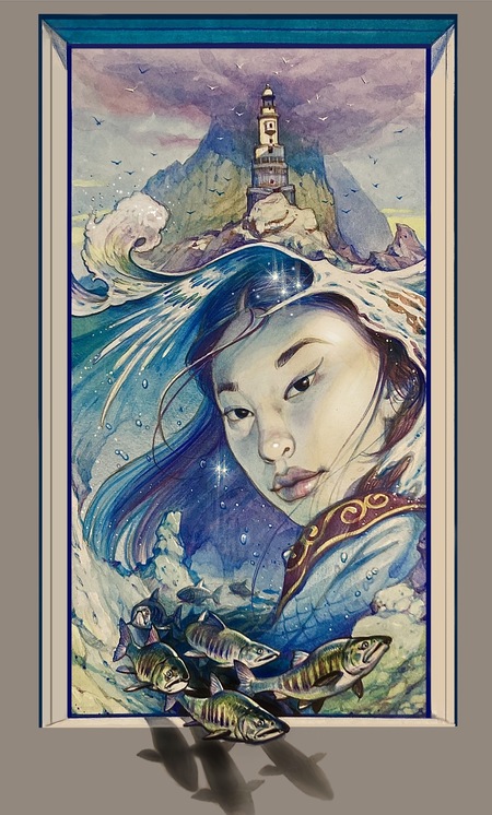 Кета — дочь титанов. Идея эскиза возникла из легенды о дочери титанов Сахалина и Курилы. В древние времена Землёй правили титаны. Титан-воин Сахалин полюбил Курилу, дочь могучего Магока. И она полюбила его. Но отец был против. Скрываясь от его гнева, влюблённые скрылись в глубинах океана. Через три года у них родилась дочь, которую назвали Кета. Родители захотели показать малышке солнце и небо, надеясь, что отец успокоился за эти годы. Но поднявшись на поверхность, они поняли, что гнев отца не утих. Он начал метать в них молнии. И одна из них летела точно в сердце Сахалина. Курила, спасая любимого, закрыла его собой и раскололась на 12 частей. Сахалин с тех пор не отходит от осколков своей любимой. А Кета перевоплотившись в рыбу, каждый год навещает своих родителей.