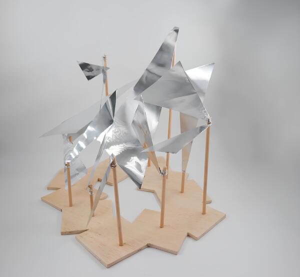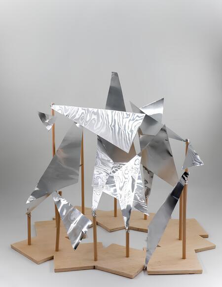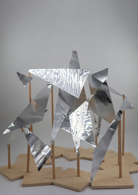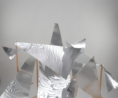 Материалы: алюминий, фанера, деревянные рейки, алюминиевая проволка