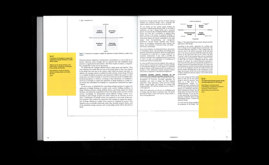 Исследование о визуальной составляющей теоретических работ раскрывает графику, как метод перевода между невербальным и вербальным. Дизайнер мыслит визуально, это характерное качество влияет на весь подход к высказыванию и процессу проектирования. Понимание, как вербальные и визуальные медиа могут соединяться, чтобы описывать абстрактные понятия, гипотезы и идеи, важная часть дизайн-мышления.