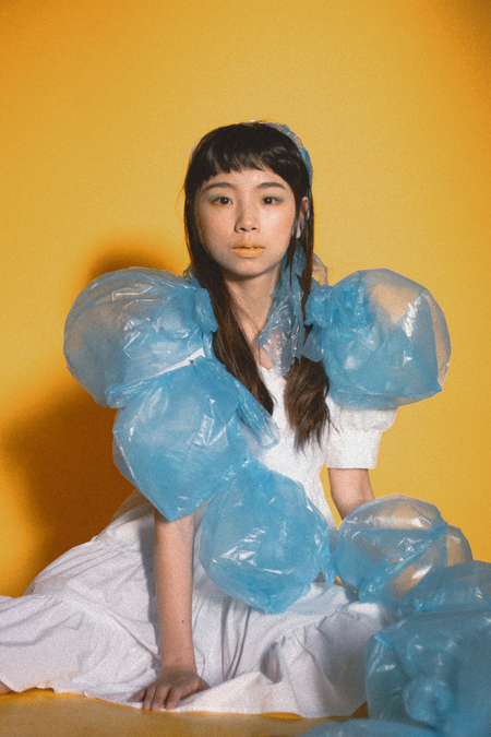 This photography work uses [balloon] which made by blue plastic garbage bags as a shooting prop, transforming daily waste into a symbol of childlike innocence, implying a profound metaphor for the impact of plastic pollution on the next generation. The inspiration for the word [blue] in the title comes from the fact that when observing the Earth from space, it mainly appears blue, symbolizing humanity’s vision of protecting the environment. The model is a relatively childlike character, with a bright and intense yellow background and lip color. The innocent child intertwined with garbage bag balloons,which implies the implicit confinement of environmental crises in the future. The balloon was supposed to float into the sky, but it may become a shackle that traps the next generation. This set of photos aims to warn viewers that the plastic we casually discard could be a crisis that children may not realize when they are young, but such [balloons] might become a chain that the next generation cannot break free from.