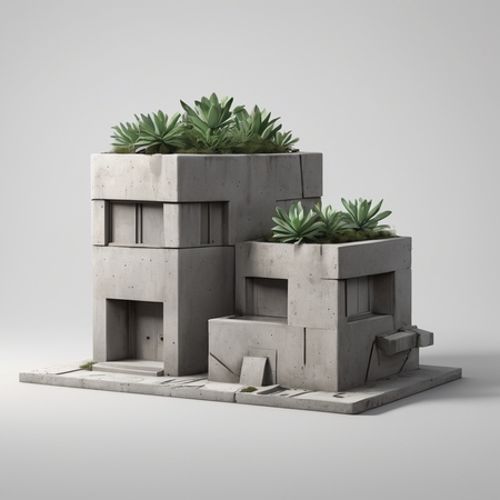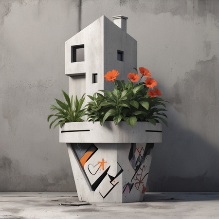 Кашпо ввиде бетонных зданий с граффити и без