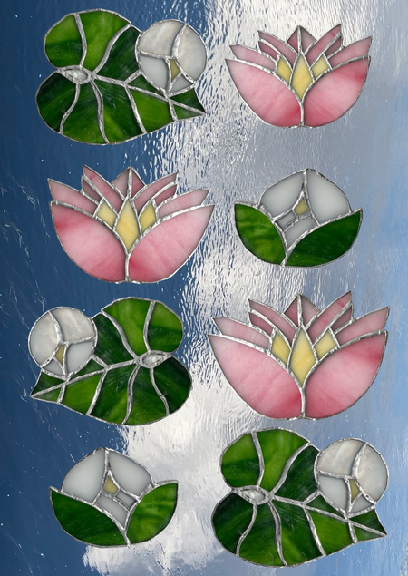 в рамках обучения мастерской по мозаике и витражу были созданы два витража из стекла — гирлянда «кувшинки» и фонарик