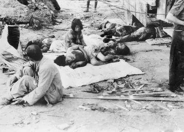 Хотелось бы обратить внимание, что на фотографиях преимущественно женщины и дети. К концу войны Американцы поняли, что заводы не работают без людей и начали бомбить не заводы, а жилые кварталы зажигательными бомбами. Вот такую демократию несёт дядя Сэм.