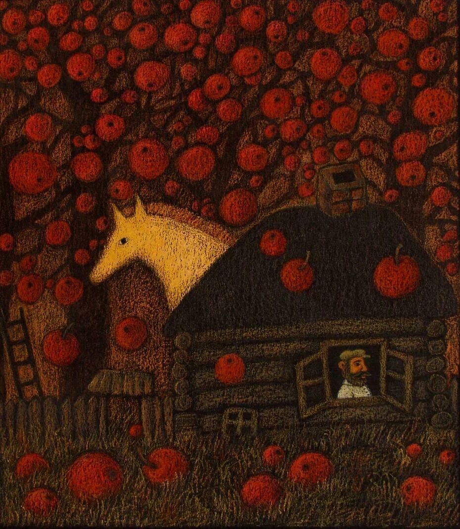 А любимые техники — все рукотворные. Рисунок, живопись на стекле, порошковая техника.
