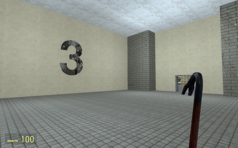 Пользуясь предоставленной свободой применения консольных команд, игрок включает noclip и облетает игровое пространство, но не находит вокруг почти ничего: за кирпичной стеной только плоское, фоновое изображение городского пейзажа, в здании слева несколько коридоров соединяют три комнаты — абсолютно пустую и темную, полностью белую, так что не видно ни стен, ни пола и комнату с зеркалом, будто балетным, во всю стену, где впервые в глаза бросается движение — движение собственного отражения.
