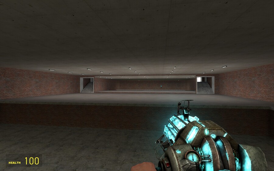 Впервые заходя в Garry’s Mod, игрок попадает на gm_construct, пустой уровень, доступный в игре по умолчанию. Холмистая полянка, пруд справа и пара небольших зданий по углам, все окаймленные квадратной кирпичной стеной.
