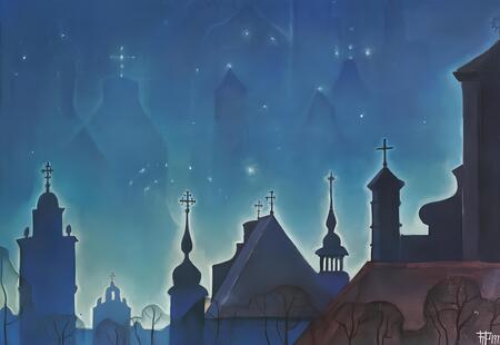 1. Б. А. Смирнов-Русецкий. Дозор ангелов, 1920-е годы. 2. Б. А. Смирнов-Русецкий. Ночные силуэты. 1971 г